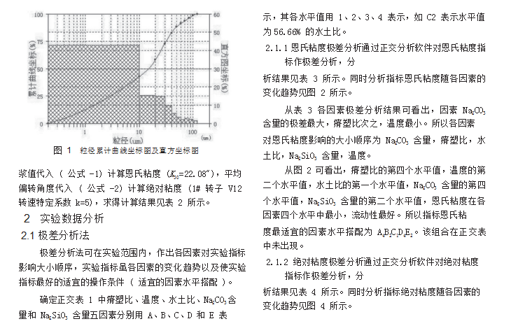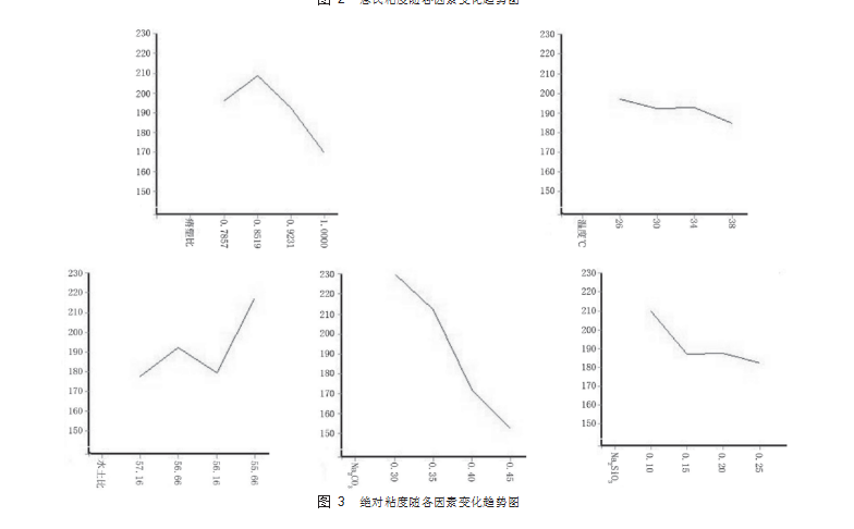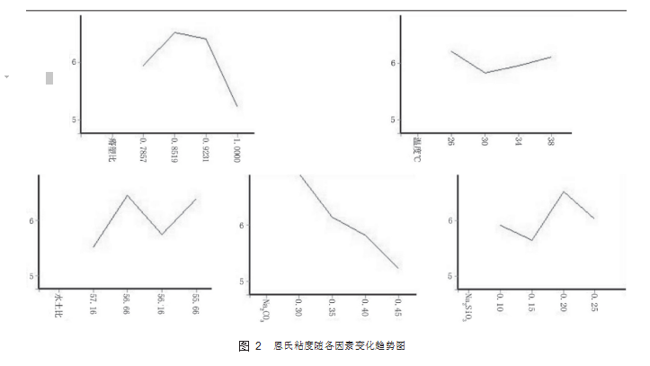 【摘 要】為了制備流動性和穩定性更好的漿液,曾提出過四種不同方案。本研究在泥漿流動性較好的方案基礎上測定了恩氏粘度和**粘度。用極差分析的方法分析了各因素對恩氏粘度和**粘度的影響大小 ;用線性逐步回歸的方法分析出 Na2CO3 含量是影響恩氏粘度和**粘度的顯著因素,并作出了恩氏粘度和**粘度的相關性線性模型。